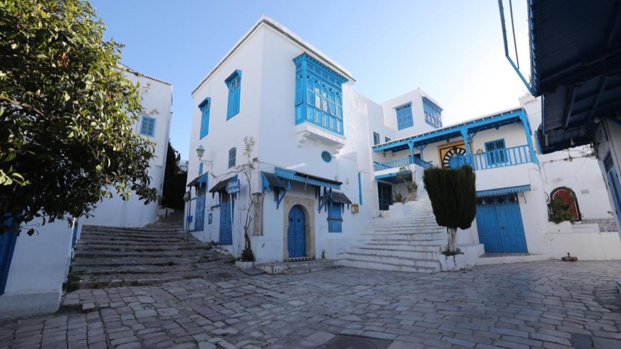 小镇坐落在突尼斯市东北约20公里处,地中海沿岸;最高海拔约100米,可大角度俯瞰湛蓝的海湾,甚至还能远眺迦太基遗址;房屋沿山势错落分布,略带坡度的鹅卵石街道蜿蜒曲折,形成了独特的滨海悬崖景观,令游客略费脚劲却不觉疲劳。