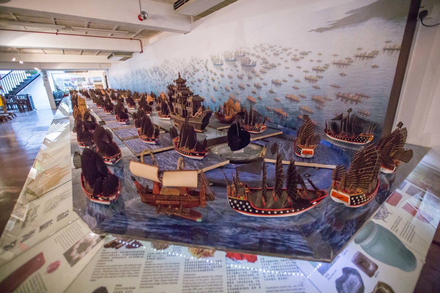 这是2018年6月9日在马来西亚马六甲郑和文化馆拍摄的郑和船队再现场景。 新华社图
